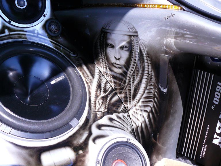Airbrush - malování pomocí stříkacích pistolí s různými průměry stříkacích trysek. Tato technika malby je známá již více než 100 let. Tento způsob malby, je ale povětšinou kombinací více malířských technik. Každý malíř, ať už používá jakékoliv techniky, si neodpustí vyzvednout fakt, že se jedná o 100% RUČNÍ PRÁCI. Nic nemaluje stroj, ale vše spočívá na zkušenostech a umu každého malíře. Touto technikou lze docílit různých barevných přechodů a díky tomu i fotorealistické malby. Jsme pro Vás schopni vytvořit jak malé, tak i velkoplošné malby.